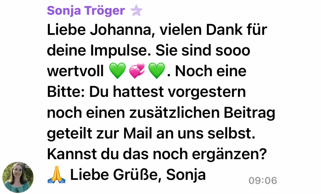 Jede Frau in diesem Buch begleitet heute selbst andere. Du kannst sie direkt anschreiben, Fragen stellen, dich inspirieren lassen. Es ist nicht nur ein Buch: Es ist ein Netzwerk aus Herz, Tiefe und Verbindung.